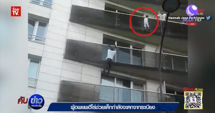 แห่ชื่นชม “กัสซามา” ผู้อพยพชาวมาลี ปีนระเบียงอาคารจากชั้นล่างขึ้นไปชั้น 5 ช่วยชีวิตหนูน้อยวัย 4 ขวบที่ห้อยตัวอยู่นอกระเบียงอาคารในกรุงปารีส ด้านประธานาธิบดีฝรั่งเศส เชิญพบ เพื่อขอบคุณเขาเป็นการส่วนตัว