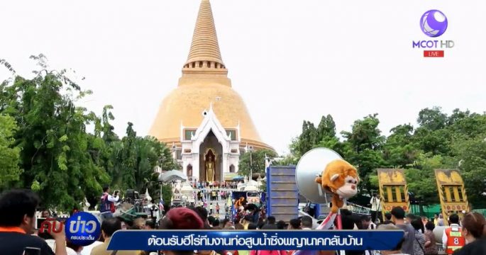 ชาวนครปฐม จัดพิธีต้อนรับทีมงานท่อสูบน้ำซิ่งพญานาคอย่างยิ่งใหญ่ หลังเดินทางกลับมาจากการปฏิบัติภารกิจช่วยเหลือทีมหมูป่าอะคาเดมี่ 13 ชีวิต ติดถ้ำหลวงสำเร็จ