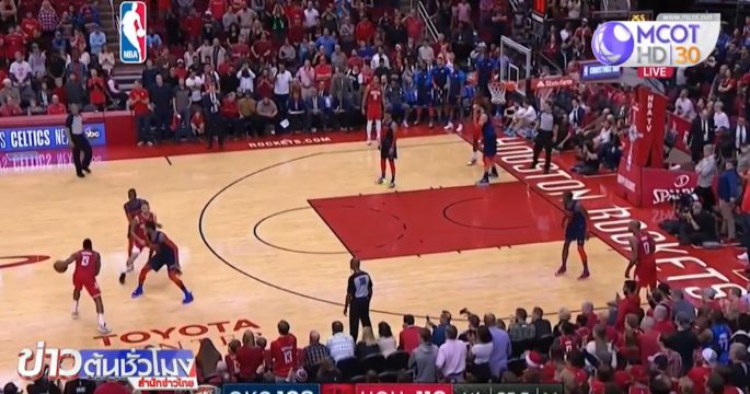 บาสเกตบอลเอ็นบีเอ ของสหรัฐ สายตะวันตก ฮุสตัน ร็อคเก็ตส์ เปิดโตโยต้า เซ็นเตอร์ พบกับ โอกลาโฮม่า ซิตี้ ธันเดอร์ส ผลการแข่งขัน ฮุสตัน เฉือนชนะ โอกลาโฮม่า 113-109