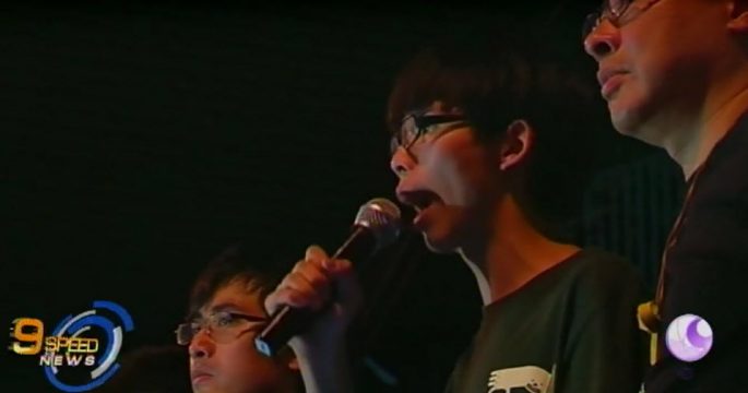 นายโจชัว หว่อง แกนนำเรียกร้องประชาธิปไตยของฮ่องกงถูกตำรวจจับกุมระหว่างรวมตัวชุมนุมประท้วงเชิงสัญลักษณ์ก่อนที่ประธานาธิบดีสี จิ้นผิง ผู้นำจีน จะเดินทางเยือนฮ่องกง