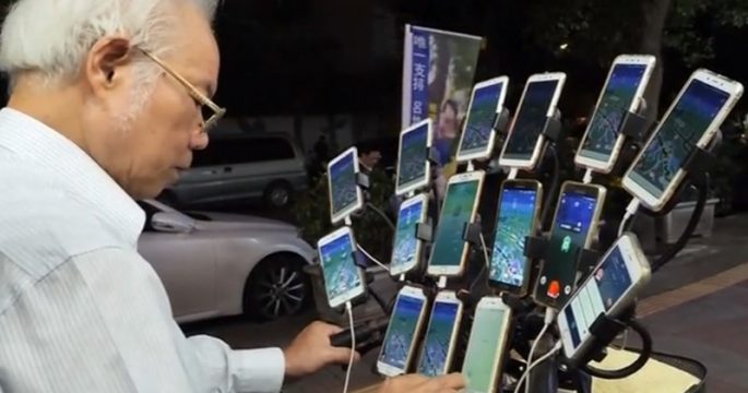 คุณตาไต้หวันใช้มือถือเล่นโปเกมอนโกทีเดียว 15 เครื่อง