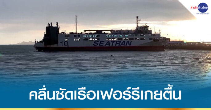 เรือเฟอร์รีขนาดใหญ่ถูกคลื่นลมแรงซัดเข้าฝั่งเกยตื้น ใช้เวลากว่า 1 ชั่วโมง จึงสามารถดึงเรือออกมาได้สำเร็จ