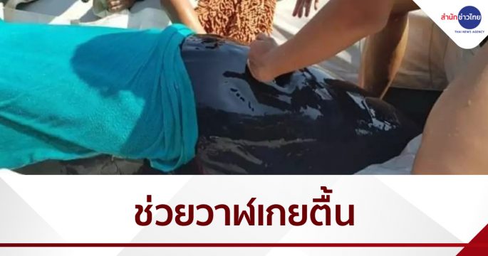 ศูนย์วิจัย ทช.อ่าวไทยตอนกลางระดมกำลังสัตวแพทย์ เจ้าหน้าที่ และอุปกรณ์ช่วยชีวิตวาฬเพชฌฆาตดำเกยตื้นทะเลปะทิว