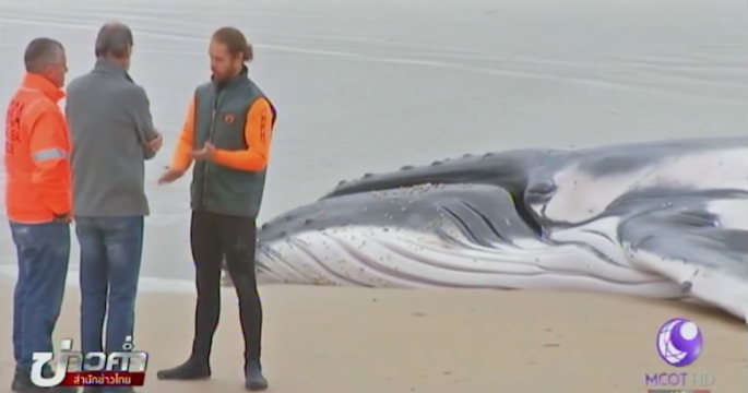 ชาวประมงและชาวบ้านในเมืองอาริกาของชิลี ช่วยชีวิตวาฬหลังค่อมที่ว่ายพลัดหลงมาเกยตื้นบริเวณชายหาด ให้กลับลงสู่ทะเลอีกครั้ง