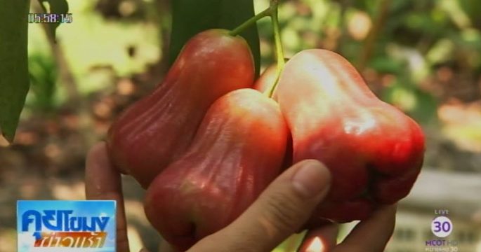 เกษตรกรหนุ่มรุ่นใหม่ใน จ.นครปฐม พลิกฟื้นสวนหลังประสบภัยน้ำท่วมใหญ่ เมื่อปี 2549 ปลูกชมพู่ทับทิมจันทร์อินทรีย์ จนได้มาตรฐานรับรองระบบงานเกษตรอินทรีย์