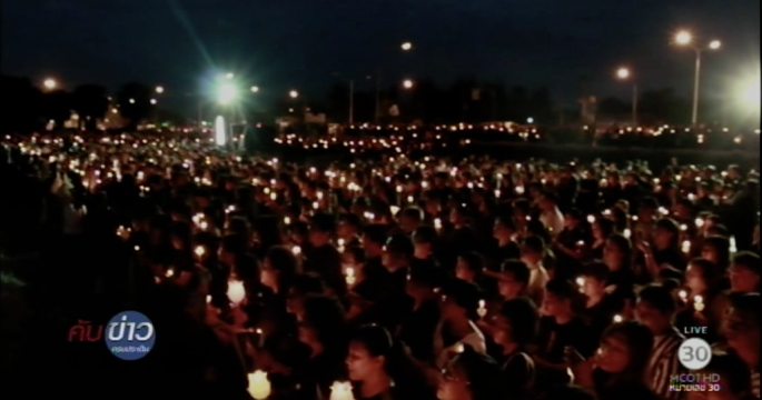 เกษตรกรผู้ปลูกกล้วยไม้ร่วมจุดเทียนแสดงความอาลัย และร้องเพลงสรรเสริญพระบารมี ด้วยสำนึกในพระมหากรุณาธิคุณ