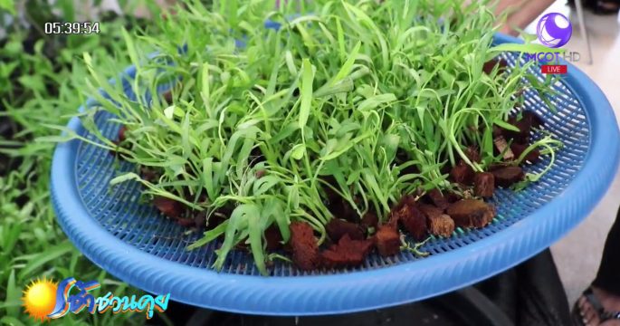 ผู้นำสภาชุมชนบ้านจุฬาภรณ์พัฒนา อ.ทุ่งใหญ่ จ.นครศรีธรรมราช ถ่ายทอดวิธีการปลูกผักบุ้งด้วยวิธีใหม่แบบลอยน้ำในกะละมัง สะดวก ดูแลง่าย เหมาะสำหรับคนเมืองหรือมีพื้นที่จำกัด