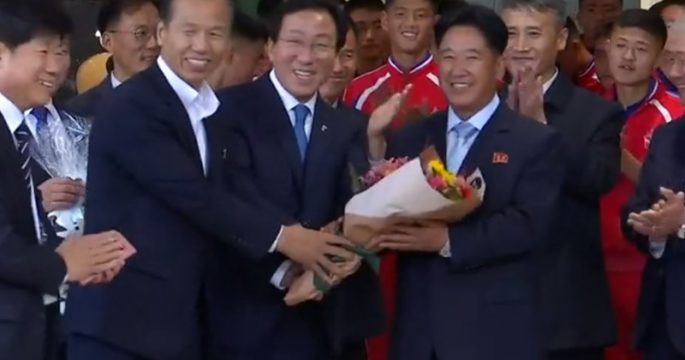 ทีมนักฟุตบอลเยาวชนของเกาหลีเหนือเดินทางถึงเกาหลีใต้ในวันนี้เพื่อเข้าร่วมการแข่งขันกีฬาอารีสปอร์ตคัพ ครั้งที่ 5 การแข่งขันรายการฟุตบอลเยาวชนนานาชาติ