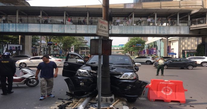 รถฟอร์จูนเนอร์เสียหลักพุ่งเสยเกาะกลางถนนแยกราชประสงค์ไม่มีผู้บาดเจ็บ