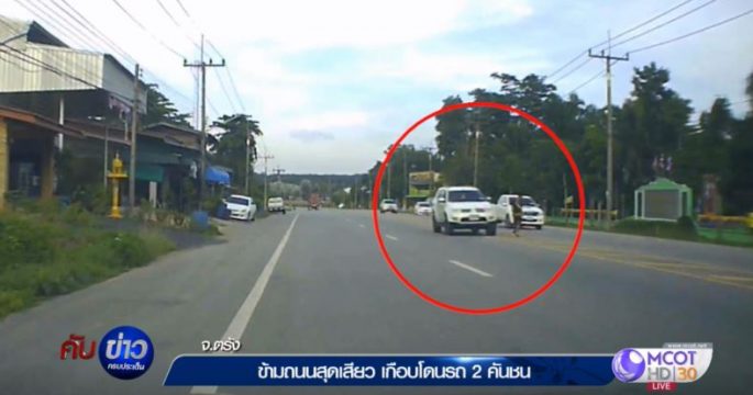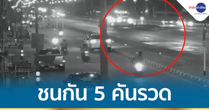 เก๋งฝ่าไฟแดงเสียหลักข้ามเกาะกลางชนกัน 5 คันรวด