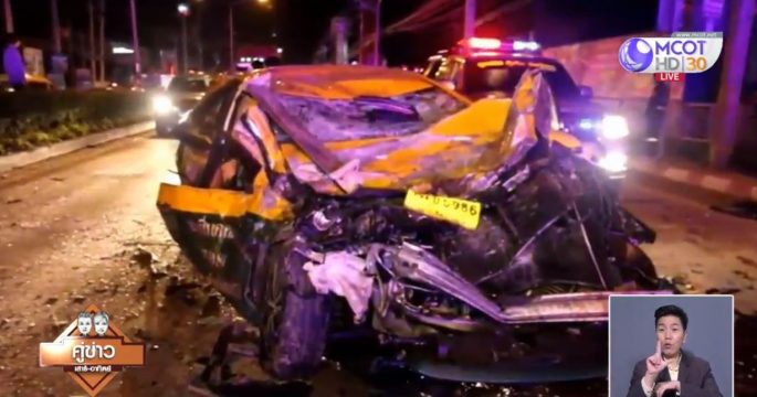 รถเก๋งซิ่งฝ่าไฟแดง ก่อนเหยียบเบรกกะทันหัน ทำให้รถเสียหลักพุ่งข้ามเกาะกลางถนนชนรถฝั่งตรงข้าม ทำให้รถชนกัน 5 คันรวด ขาเข้าตัวเมืองฉะเชิงเทรา