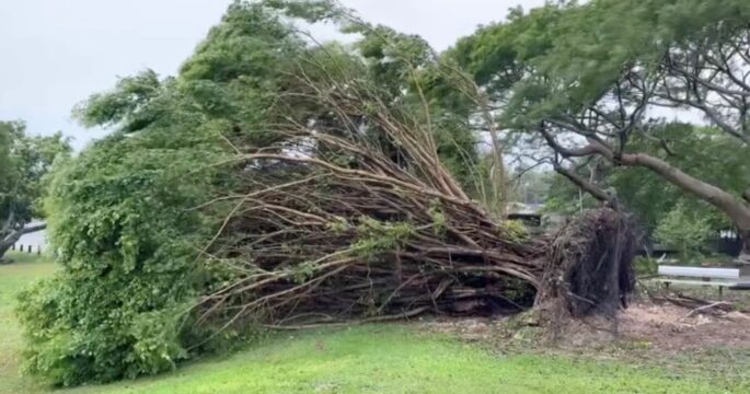 ไต้ฝุ่น “มาวาร์” เคลื่อนตัวเข้าสู่เกาะกวมแล้ว แม้ว่าศูนย์กลางของพายุไม่ได้ขึ้นฝั่งโดยตรง แต่ก็ทำให้เกิดฝนตกหนักและลมแรง ส่งผลให้ไฟฟ้าดับแทบทั้งเกาะ
