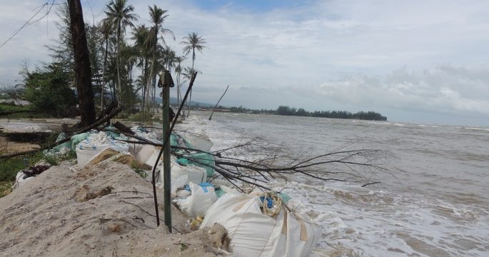 พังงา 26 พ.ค.- นอภ.ตะกั่วป่าห่วงชุมชนชายฝั่งเกาะคอเขาเร่งช่วยเหลือความเสียหายจากคลื่นลมแรงซัดบ้านเรือนและน้ำทะเลหนุนท่วม เสนอจังหวัดประกาศพื้นที่ประสบภัย นายวิโรจน์ สุวรรณวงศ์ นายอำเภอตะกั่วป่า จ.พังงา พร้อมนายสุดจิต ลิ่มพาณิชย์ กำนันตำบลเกาะคอเขา ผู้นำท้องถิ่น และหน่วยงานที่เกี่ยวข้องเร่งตรวจสอบความเสียหายและแนวป้องกันคลื่นในพื้นที่หมู่ 4 บ้านปากเกาะ ต.เกาะคอเขา หลังจากเมื่อคืนที่ผ่านมา (25 พ.ค.) คลื่นลมทวีความรุนแรงส่งผลกระทบต่อบ้านเรือนและทรัพย์สินของชาวบ้าน รวมทั้งรีสอร์ทและถนนถูกคลื่นซัดเสียหาย ขณะที่บิ๊กแบ็คที่อำเภอตะกั่วป่าและองค์การบริหารส่วนตำบล (อบต.) เกาะคอเขา ใช้เป็นแนวกันคลื่นไม่สามารถต้านทานได้เช่นกัน นายวิโรจน์ กล่าวว่า ทางการได้จัดสรรงบประมาณ 32 ล้านบาท เพื่อทำแนวกันคลื่นความยาวประมาณ 520 เมตร ทางฝั่งตะวันตกของเกาะคอเขา ซึ่งอยู่ระหว่างดำเนินการ หากแล้วเสร็จ จะช่วยบรรเทาปัญหาได้ระดับหนึ่ง อย่างไรก็ตาม ขอให้ราษฎรได้เพิ่มความระมัดระวังอันตรายจากภัยธรรมชาติในครั้งนี้ ซึ่งอำเภอได้เสนอไปยังจังหวัดเพื่อพิจารณาประกาศให้พื้นที่บ้านปากเกาะ หมู่ 4 เป็นพื้นที่เสี่ยงภัยพิบัติทางธรรมชาติ ทั้งนี้ มีคำเตือนคลื่นลมจะมีกำลังแรงต่อเนื่องไปจนถึงวันที่ 27 พ.ค. นี้ เรือประมงและเรือโดยสารขนาดเล็กให้งดออกชายฝั่งไว้ก่อน.-สำนักข่าวไทย