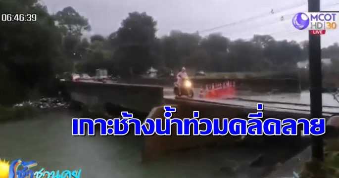 สถานการณ์น้ำท่วมที่เกาะช้าง จ.ตราด เช้านี้คลี่คลายแล้ว ถนนไม่มีน้ำขัง สัญจรได้ปกติ หลังวานนี้ เกิดน้ำท่วมหนัก ส่วนบริเวณสะพานบ้านคลองพลู ซึ่งคอสะพานถูกน้ำพัดขาด เจ้าหน้าที่นำเสาไฟฟ้ามาวางพาดให้รถจักรยานยนต์ผ่านได้ชั่วคราว