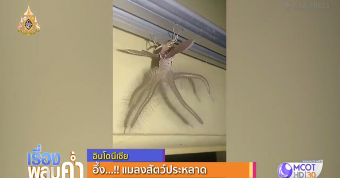 ชาวบ้านบนเกาะบาหลีของอินโดนีเซีย พบสัตว์ประหลาดปีนไต่อยู่บนเพดานบ้านหลังหนึ่ง ยังไม่มีใครรู้ชัดว่าคือตัวอะไร เชื่ออาจเป็นผีเสื้อขนาดยักษ์ชนิดหนึ่ง