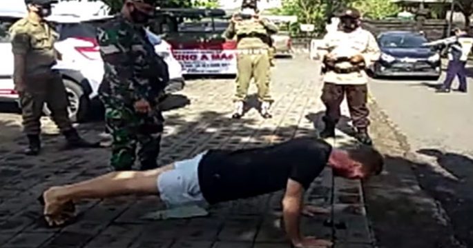อินโดนีเซียลงโทษชาวต่างชาติที่ไม่สวมหน้ากากให้วิดพื้น