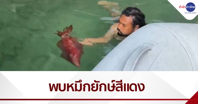 ฮือฮา! นักท่องเที่ยวพบปลาหมึกยักษ์หายาก สีแดงทั้งตัว โผล่ขึ้นมาบริเวณน้ำตื้นบนอ่าวบุหยา หลังเกาะปอดะ ต.อ่าวนาง อ.เมือง จ.กระบี่ ยาวประมาณ 2 ฟุต หนักกว่า 2 กิโลกรัม