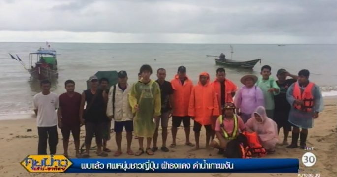 พบแล้วร่างนักท่องเที่ยวหนุ่มชาวญี่ปุ่นสูญหายขณะดำน้ำที่เกาะพะงัน หลังจากไม่สวมเสื้อชูชีพและฝ่าฝืนสัญลักษณ์ธงแดงห้ามลงเล่นน้ำทะเลช่วงคลื่นลมแรง