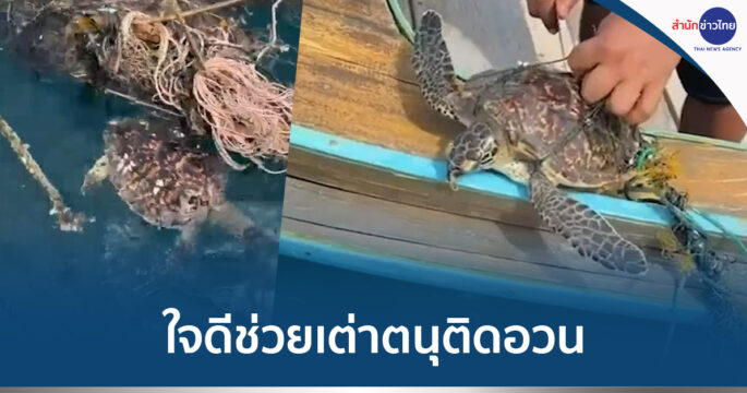 ชื่นชมกัปตันเรือใจดี ช่วยชีวิตเต่าตนุติดอวนกลางทะเลหน้าเกาะพีพี จ.กระบี่ รอดชีวิต ขณะขับเรือพานักท่องเที่ยวกลับจากอ่าวมาหยา ท่ามกลางความดีใจของนักท่องเที่ยว