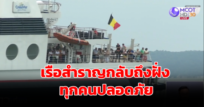 เรือสำราญที่ประสบเหตุชนกองหิน บริเวณเกาะพีพี จ.กระบี่ ได้รับการช่วยเหลือกลับถึงฝั่งแล้ว ผู้โดยสารและลูกเรือทั้งหมดปลอดภัย
