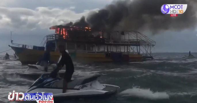 เพลิงไหม้เรือซีลวอล์คเกอร์กลางทะเลเกาะล้าน เหตุกัปตันเรืออุ่นอาหารทิ้งไว้ ผู้ประกอบการเรือเร็ว-เจ็ตสกี ระดมพ่นน้ำจนเพลิงสงบ ช่วยกัปตัน-ลูกเรือ ออกมาอย่างปลอดภัย