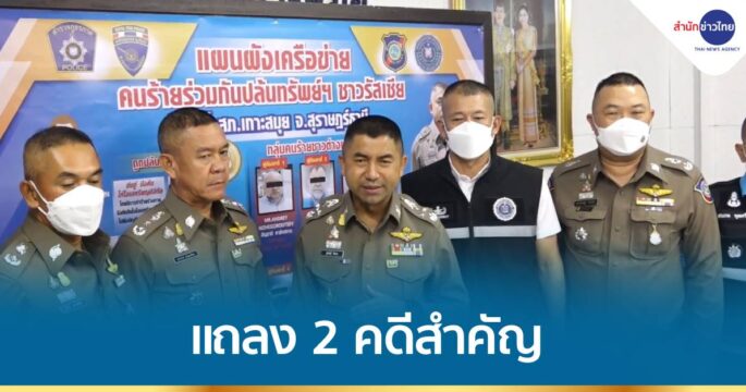 “พล.ต.อ.สุรเชษฐ์” รอง ผบ.ตร. ร่วมแถลงข่าว 2 คดีสำคัญ คดีแรกแก๊งชาวต่างชาติปล้นทรัพย์นักท่องเที่ยวรัสเซีย และคดีเจ้าหน้าที่ตำรวจ สภ.เกาะสมุย พูดจาคุกคามทางเพศ เรียกรับสินบนอันเป็นความผิดตามกฎหมาย