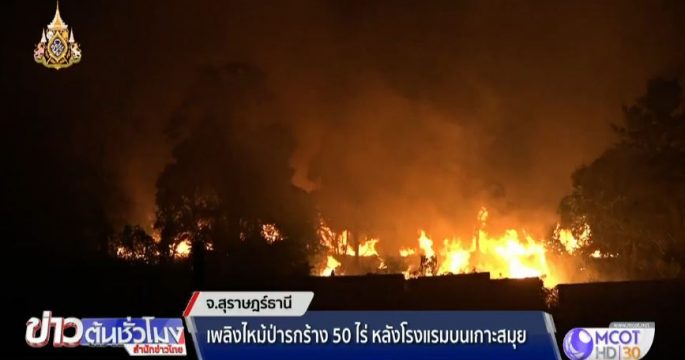 ไฟไหม้ป่ารกร้างอย่างหนัก หลังโรงแรมบนเกาะสมุย สร้างความเสียหายมากกว่า 50 ไร่