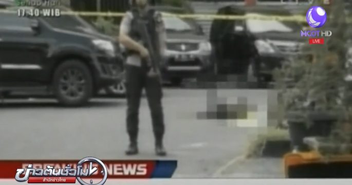 ตำรวจวิสามัญฯ คนร้าย 4 คนใช้ดาบบุกโจมตีสำนักงานใหญ่ตำรวจบนเกาะสุมาตรา ตาย 1 เจ็บ 2