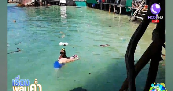 กลุ่มจิตอาสาแชร์ภาพนักท่องเที่ยวต่างชาติว่ายน้ำท่ามกลางขยะเกลื่อนทะเล บริเวณเกาะไข่ จ.พังงา