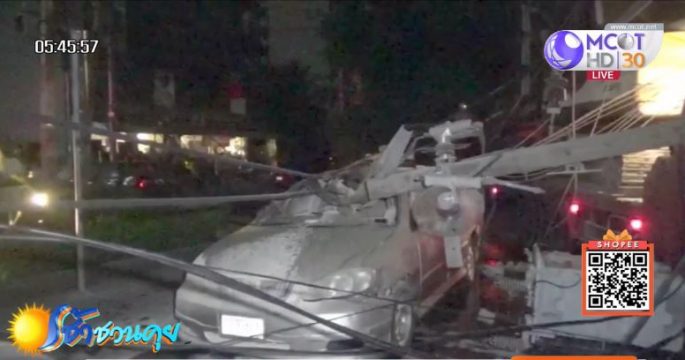 เมื่อคืนนี้ ที่เขตทุ่งครุ เกิดเหตุรถเทรลเลอร์ เกี่ยวสายไฟฟ้า จนเสาไฟล้ม รถชาวบ้านเสียหาย 4 คัน พร้อมบ้านอีก 1 หลัง