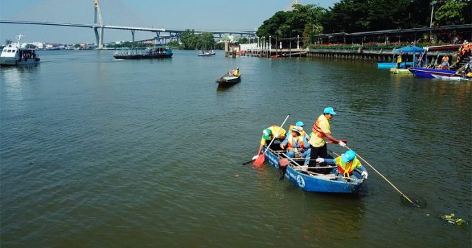 วัดจากแดง จัดกิจกรรมเก็บขยะแม่น้ำเจ้าพระยา รอบเกาะกระเพาะหมู หลังวันลอยกระทงในสมุทรปราการ เพื่อกันขยะและกระทงลอยออกสู่ทะเล