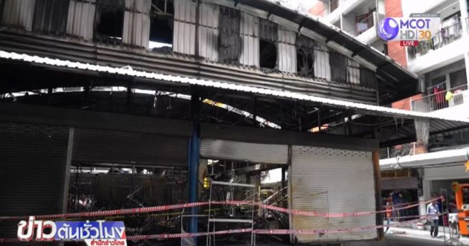 เจ้าหน้าที่กองพิสูจน์หลักฐานลงพื้นที่ตรวจสอบและเก็บหลักฐานในจุดเกิดเหตุเพลิงไหม้ 4 จุดที่ย่านการค้าประตูน้ำ เพื่อหาความเชื่อมโยงที่ชัดเจนว่าเกี่ยวข้องกับการลอบวางระเบิดป่วนเมือง 9 เหตุการณ์ใน 5 พื้นที่