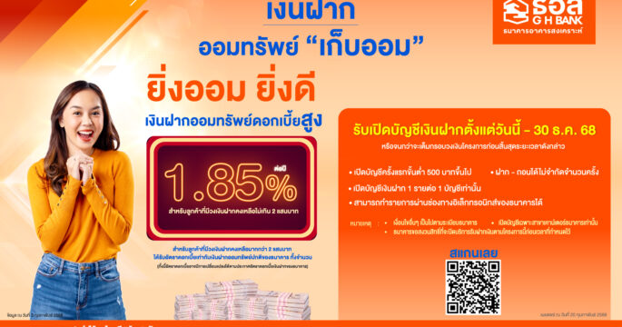 ยิ่งออม ยิ่งดี ธอส. เปิดเงินฝากออมทรัพย์ “เก็บออม” ให้ดอกเบี้ยสูงถึง 1.85% ต่อปี เปิดบัญชีได้ถึงวันที่ 30 ธันวาคม 2568