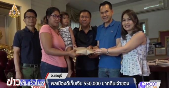 พลเมืองดีเก็บเงินสดจำนวน 550,000 บาท ส่งคืนเจ้าของ ซึ่งทำหล่นหายที่ศูนย์อาหารของห้างสรรพสินค้าแห่งหนึ่ง