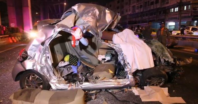 พ่อซิ่งเก๋งพาลูกชาย 3 คน ฝ่าสายฝนชนท้ายกระบะ ที่ จ.ขอนแก่น พ่อเสียชีวิตคาที่ ส่วนลูกชายบาดเจ็บ