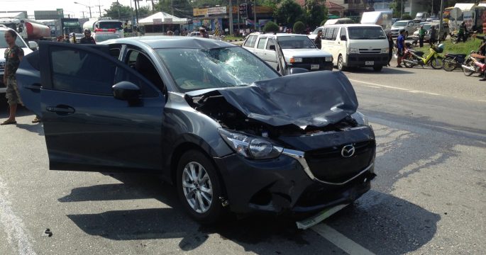 อุบัติเหตุที่จังหวัดชุมพร เก๋งป้ายแดงพุ่งชนท้ายรถบรรทุกพ่วงพังยับ เพื่อนที่นั่งมาด้วยเสียชีวิต