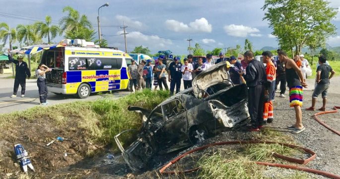 ชลบุรี 16 มิ.ย.- 2 หนุ่มพลเมืองดีกลับจากส่งสินค้าอาหารทะเลเจอเหตุกลางถนนสายบางละมุง-ชลบุรี ไฟไหม้รถเก๋งเสียหลัก รุดช่วยแม่ลูก 3 ชีวิตออกมาได้ทัน ขณะที่พ่อคนขับไฟคลอกเสียชีวิต เมื่อเวลา 16.30 น. (16 มิ.ย.) ร.ต.อ.สุภชาติ วสุสกุลเจริญ พนักงานสอบสวน สภ.ห้วยใหญ่ อ.บางละมุง จ.ชลบุรี รับแจ้งอุบัติเหตุรุนแรงรถเสียหลักเกิดเพลิงลุกไหม้บนทางหลวงสาย 331 (สัตหีบ – เขาดิน) หมู่ 1 ต.ห้วยใหญ่ จึงประสานหน่วยกู้ภัยสว่างบริบูรณ์พัทยา และหน่วยบรรเทาสาธารณภัยเทศบาลห้วยใหญ่เร่งเข้าช่วยเหลือเป็นรถยนต์นั่งส่วนบุคคล สีขาว ทะเบียน กธ 1912 ระยอง ชนติดกับท่อระบายน้ำร่องกลางถนนสภาพพังยับเยิน และเพลิงจากห้องเครื่องลุกลามไปทั้งคัน เจ้าหน้าที่ใช้เวลาฉีดน้ำสกัดกว่า 30 นาที จึงควบคุมไว้ได้อย่างสงบ และพบศพชายถูกไฟคลอกที่เบาะนั่งคนขับ ส่วนผู้บาดเจ็บอีก 3 ราย เป็นหญิงกับเด็กอีก 2 ราย ทราบว่ามีพลเมืองดีให้การช่วยเหลือนำส่งโรงพยาบาลสิริกิติ์ไปก่อนหน้านี้ นายจักรพันธุ์ ผูกดวง อายุ 23 ปี […]