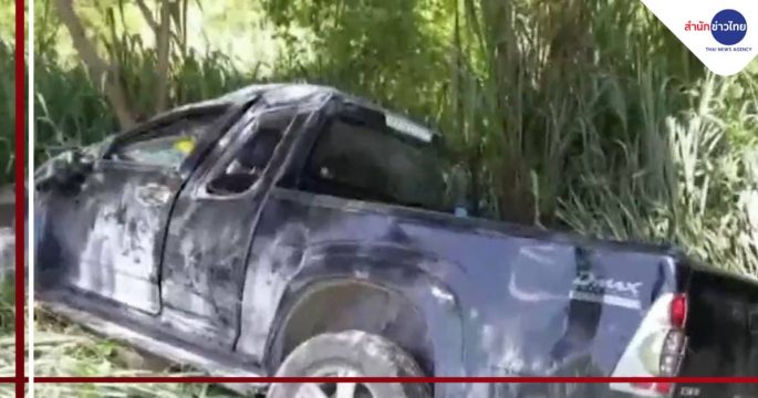 3 หนุ่มขับเก๋งคู่ใจกลับบ้าน ก่อนเสียหลักพลิกคว่ำตกถนน ไฟลุกไหม้ทั้งคัน ถูกไฟคลอกเสียชีวิตคาซากรถ 2 คน ส่วนอีก 1 คนกระเด็นออกมานอกรถได้รับบาดเจ็บเล็กน้อย