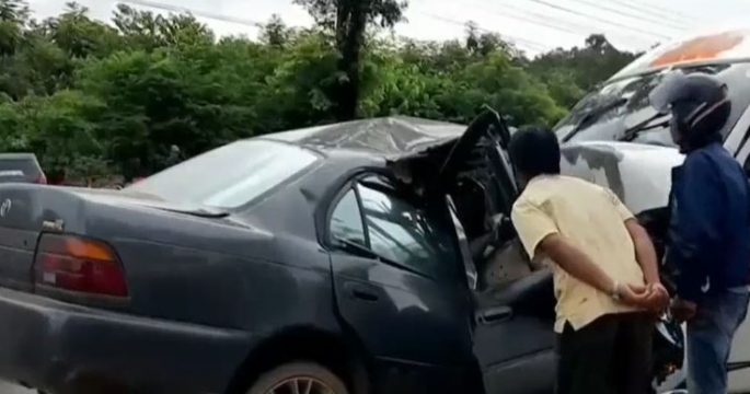 ครูโรงเรียนบ้านหนองแก้วสำโรง จ.ศรีสะเกษ ขับเก๋งพุ่งข้ามเลนชนกระบะที่วิ่งสวนมา เสียชีวิตคารถรวม 2 ราย ส่วนคนขับกระบะบาดเจ็บ