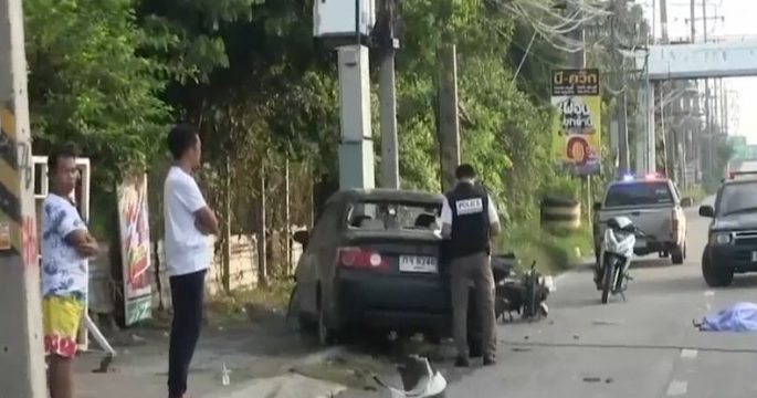 เกิดอุบัติเหตุรถยนต์ที่มีตำรวจเป็นคนขับ พุ่งชนรถจักรยานยนต์ของทหารเกษียณอายุราชการ จนกระเด็นไปไกลกว่า 30 เมตร เสียชีวิตคาที่
