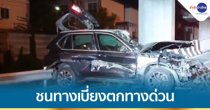 รถ BMW รุ่น X5 เสียหลักชนทางเบี่ยงตกทางด่วน รถพังยับ คนขับหมดสติ อาการสาหัส