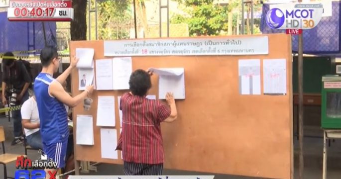 บรรยากาศหน่วยเลือกตั้งที่ 18 เขตจตุจักร เจ้าหน้าที่ประจำหน่วยเลือกตั้งจัดเตรียมสถานที่เรียบร้อยแล้ว มีประชาชนเข้ามาตรวจสอบลำดับชื่อของตนเอง ก่อนเปิดหีบเวลา 08.00 น.