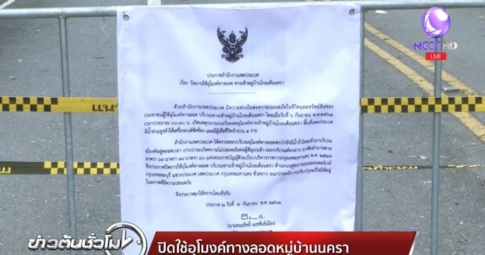 ผอ.เขตประเวศ ติดป้ายประกาศห้ามใช้อุโมงค์ทางลอดภายในหมู่บ้านหรู หลังพบรอยรั่วช่วงกลางอุโมงค์