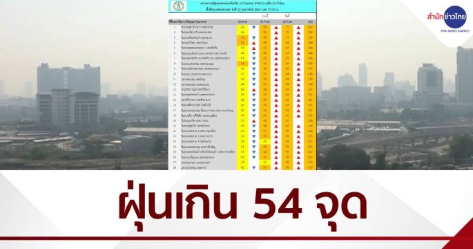 กทม.เช้านี้ ฝุ่น PM2.5 เกินมาตรฐาน 54 พื้นที่ สูงสุดที่เขตสายไหม ตรวจวัดได้ 77 ไมโครกรัม/ลูกบาศก์เมตร