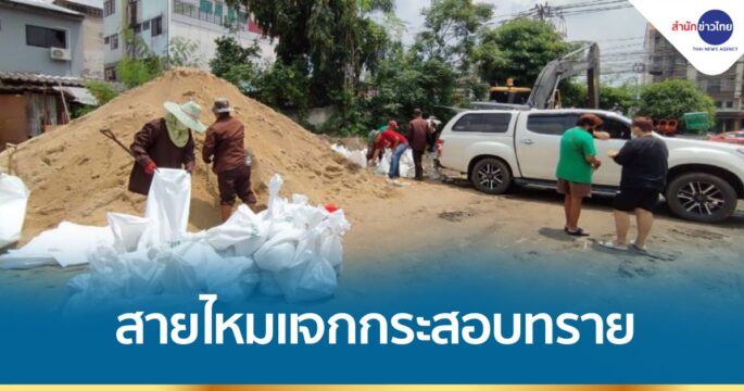 ประชาชนที่สายไหม ซึ่งถูกน้ำท่วมช่วงปลายสัปดาห์ที่ผ่านมา รับกระสอบทรายที่เขตเตรียมไว้ให้ ไปป้องกันน้ำท่วมซ้ำอีก เพราะไม่วางใจในสถานการณ์