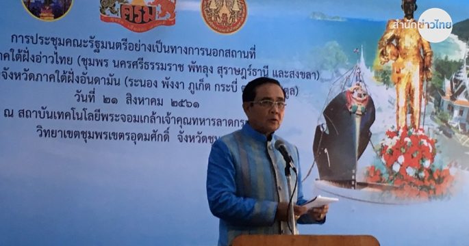 นายกรัฐมนตรี เผย ครม.ไม่ได้อนุมัติโครงการใดๆ แต่มารับฟังข้อเสนอภาคเอกชนที่จะเพิ่มศักยภาพพื้นที่ 11 จังหวัดภาคใต้ ย้ำการพัฒนาเขตเศรษฐกิจพิเศษภาคใต้จะเชื่อมโยงสองฝั่งทะเลอันดามันและอ่าวไทย ใน 5 ด้าน
