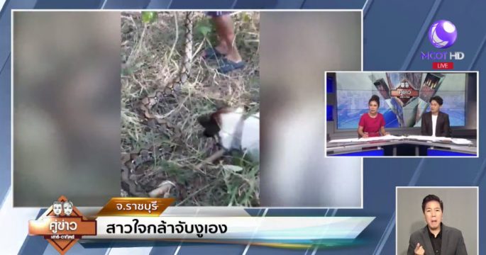 หญิงเปิดร้านขายต้นไม้ ต.ดอนตะโก อ.เมือง จ.ราชบุรี ใจกล้าได้ถ่ายคลิปวีดีโอโพสต์ลงบนโลกโซเชียล ขณะใช้บ่วงคล้องคอจับงูเหลือมด้วยตัวเอง ขณะกำลังรัดเขมือบแมวตัวหนึ่งที่เลี้ยงไว้ก่อนกลืนลงท้อง