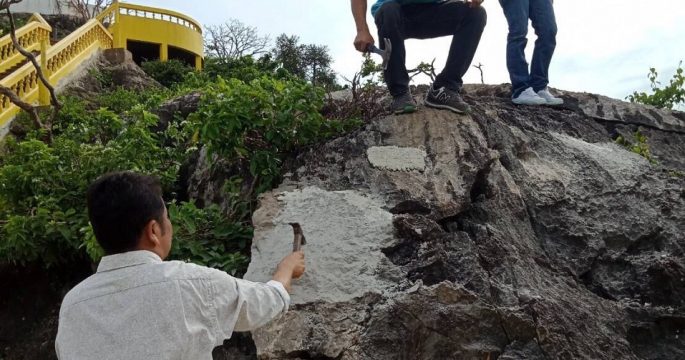 ประจวบคีรีขันธ์ 4 ก.ย.- รองผู้ว่าฯ ประจวบคีรีขันธ์เผย จนท.เร่งทุบออกพื้นปูนเททับโขดหินข้างบันไดทางขึ้นเขาช่องกระจกเขียนข้อความทิ้งไว้ พร้อมหาตัวคนทำผิดดำเนินการตามกฎหมายฐานทำลายสิ่งแวดล้อม กรณีโซเชียลแชร์ภาพบริเวณโขดหินใกล้บันไดทางขึ้นเขาช่องกระจก แหล่งท่องเที่ยวในจังหวัดประจวบคีรีขันธ์ ซึ่งมีการนำซีเมนต์ไปปิดทับบนแผ่นหินและเขียนข้อความบนพื้นผิวคอนกรีตเป็นภาษาต่างด้าวในทำนอง “สวัสดีเรา เราชาว…..พวกกัน สุขภาพแข็งแรงสุขกายสุขใจ” ลงวันที่ 2 มิถุนายน 2559 นายพงษ์พันธ์ วิเชียรสมุทร รองผู้ว่าราชการจังหวัดประจวบคีรีขันธ์ เปิดเผยว่า ได้รับรายงานจากนายสมพร ปัจฉิมเพ็ชร ปลัดจังหวัดประจวบคีรีขันธ์ว่า ได้ให้เจ้าหน้าที่ อส.ไปทุบทำลายคอนกรีตดังกล่าวแล้ว เนื่องจากเป็นการกระทำที่ไม่เหมาะสมในพื้นที่สำคัญของจังหวัด ผู้กระทำเข้าข่ายทำลายทรัพยากรธรรมชาติและสิ่งแวดล้อมอย่างชัดเจน และอาจทำให้เกิดความขัดแย้งได้ พร้อมกันนี้ให้เร่งสืบหาข้อเท็จจริงและหลักฐานเพื่อดำเนินการตามกฎหมาย คาดว่ามาลูกจ้างรายหนึ่งที่มาทำงานก่อสร้างรับเหมาโครงการปรับปรุงภูมิทัศน์บนเขาช่องกระจกเป็นผู้เขียนข้อความ.-สำนักข่าวไทย