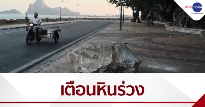 หินก้อนใหญ่ร่วงจากยอดเขาช่องกระจก จ.ประจวบฯ กระทบขอบปูนซีเมนต์ติดถนนเลียบชายทะเล เตือนประชาชนระวัง