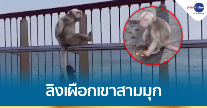พบลิงเผือกหาดูยาก ลงจากเขาสามมุก มารับอาหารจากนักท่องเที่ยว ใบหน้าคล้ายลิงในตำนาน ชาวบ้านเชื่อมีแค่ 2 ตัว ปกติชอบอยู่บนยอดเขาสูง ไม่ให้ใครเห็นง่ายๆ